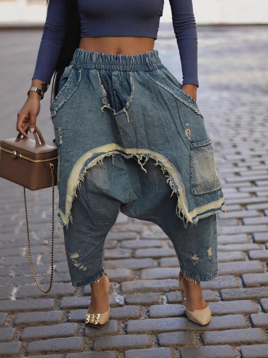 Distressed Brushed Ripped Jeans Fashion Loose Harem Pants