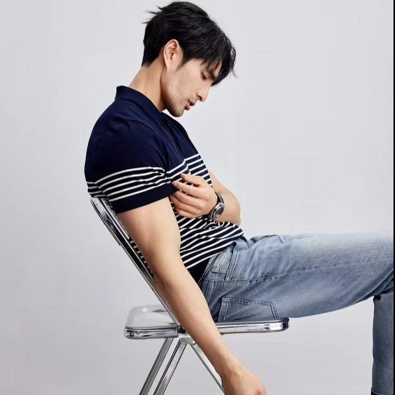 Ice Silk Sweater Plus Size Striped All-matching Short Sleeve
