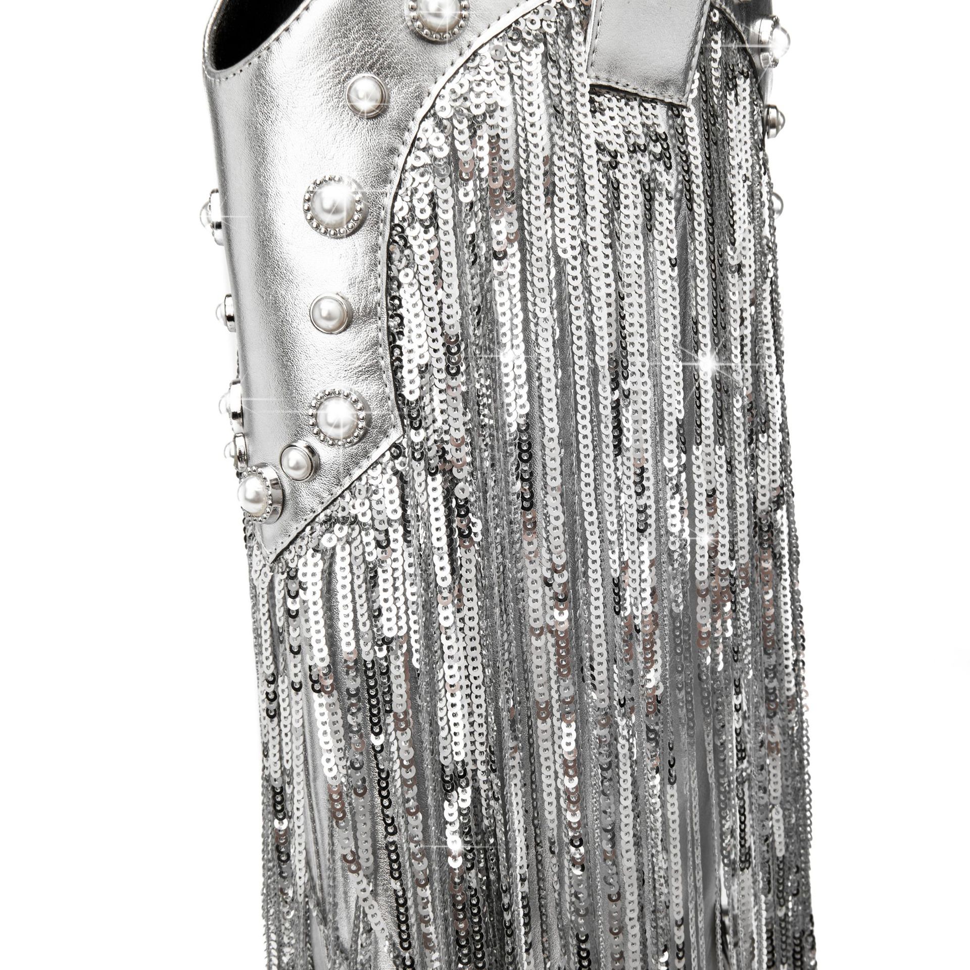 Sequin Tassel Pointed Sleeve High Leg Boot