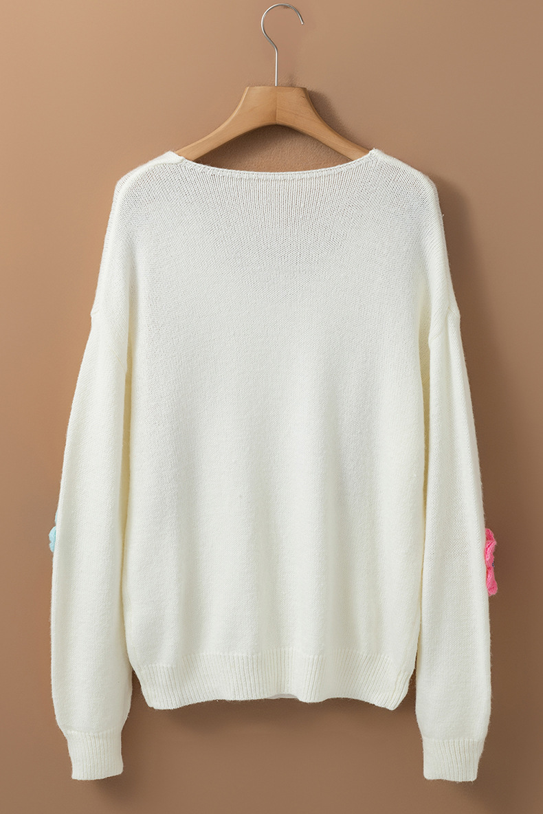 Winter New Flower Crochet V-neck Pullover Sweater Women