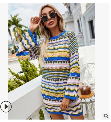Women Rainbow Autumn And Winter European And American Round Neck Street Sweater